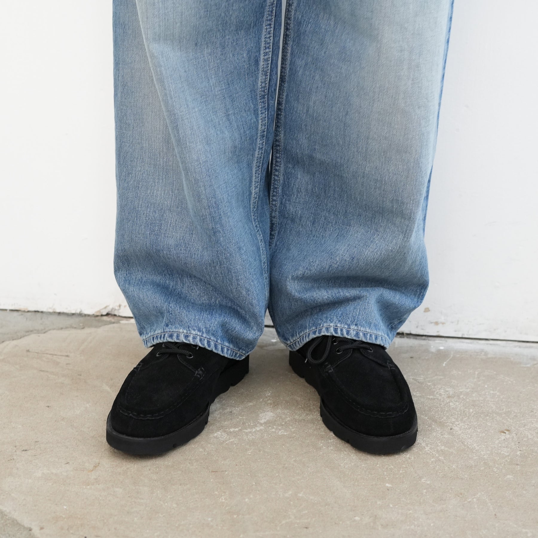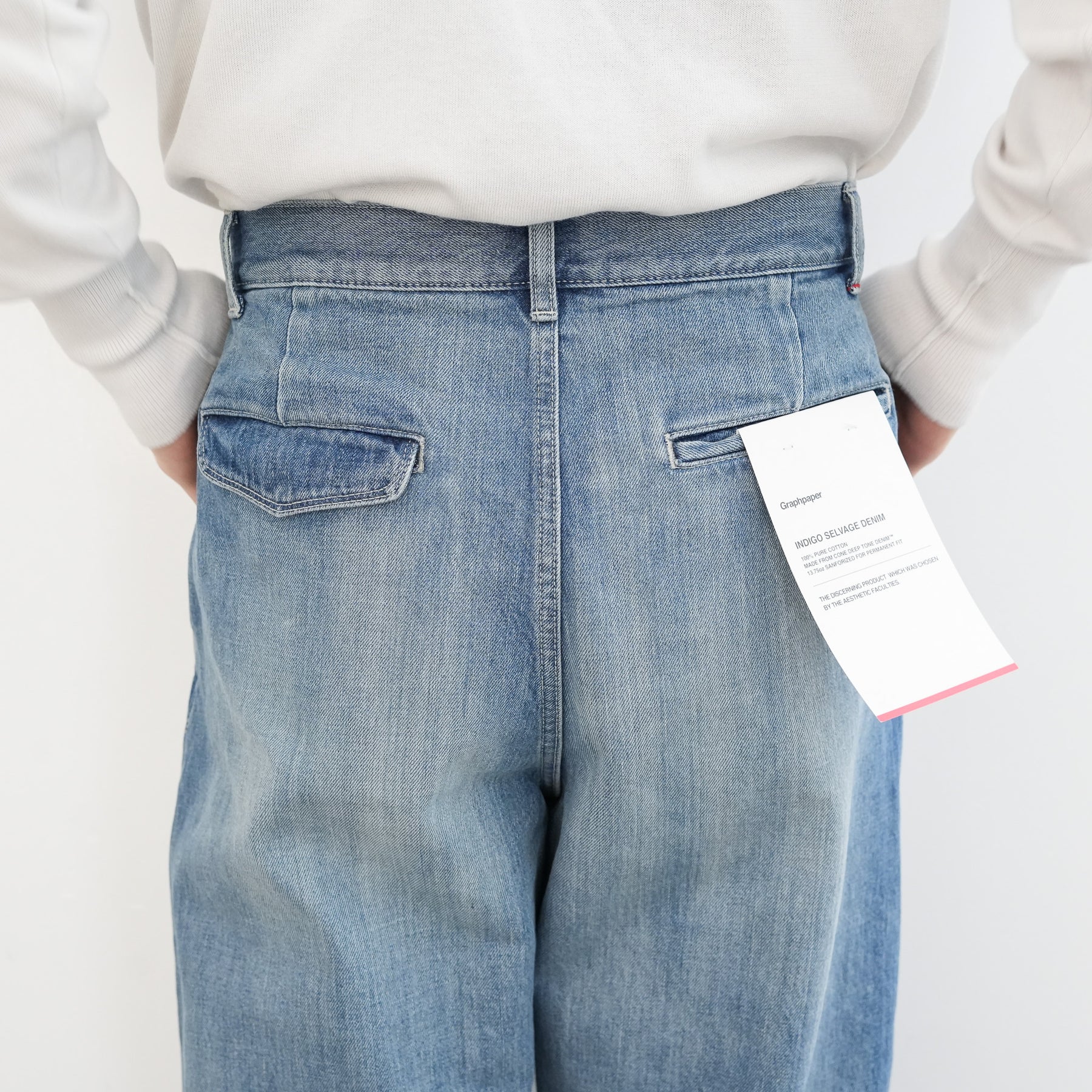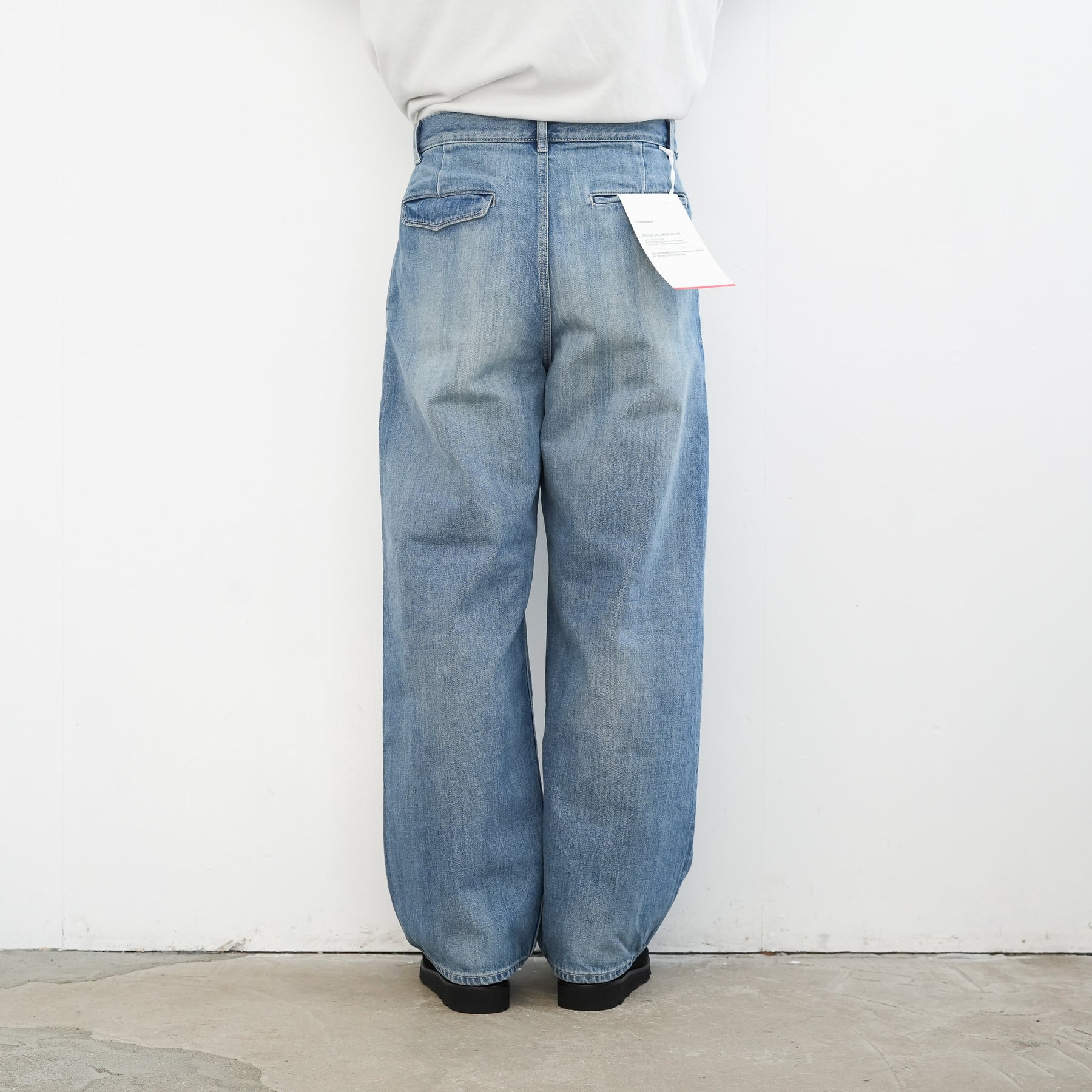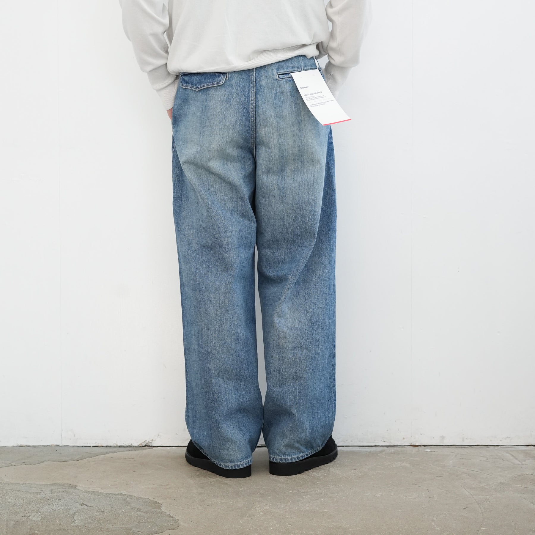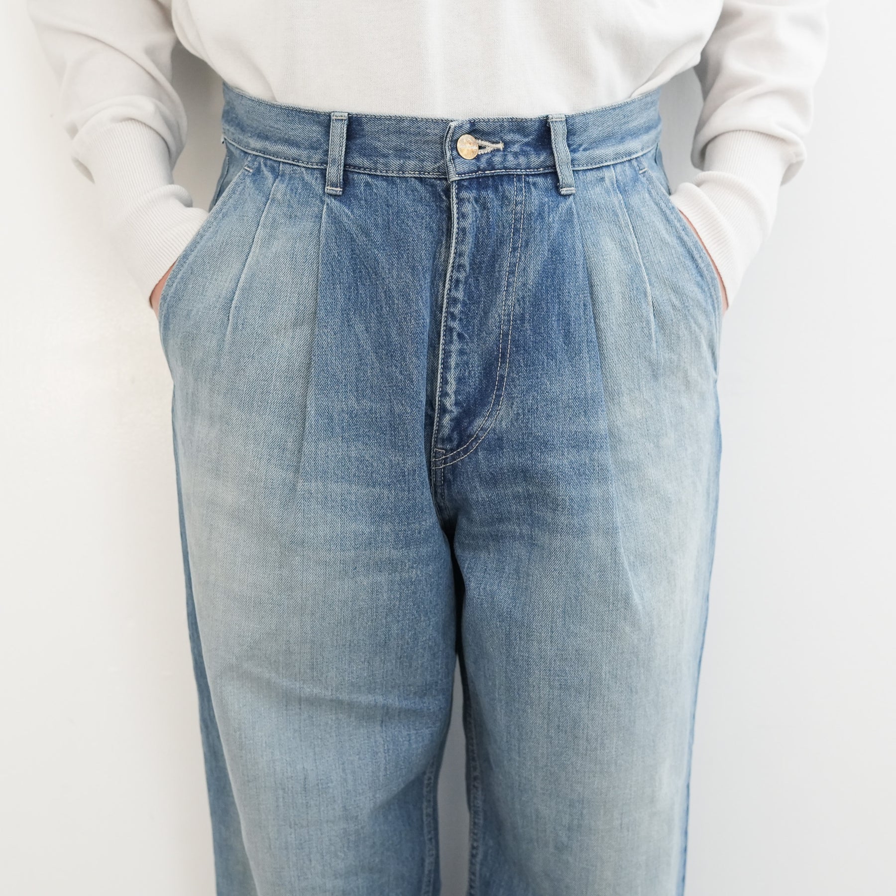130年もの歴史を誇る米国Cone Denim社が作る13.75オンスのセルビッチデニム。ウエストにはタックが入り、ヒップからワタリにかけて適度な余裕があるワイドストレートパンツ。旧式力織機でゆっくりと織り上げることで生まれる、生地表面のざらっとした凹凸やムラがデニム本来の風合いを感じさせる魅力的な素材。ライトフェイドは長く使い込まれたような淡い色合いが特徴です。