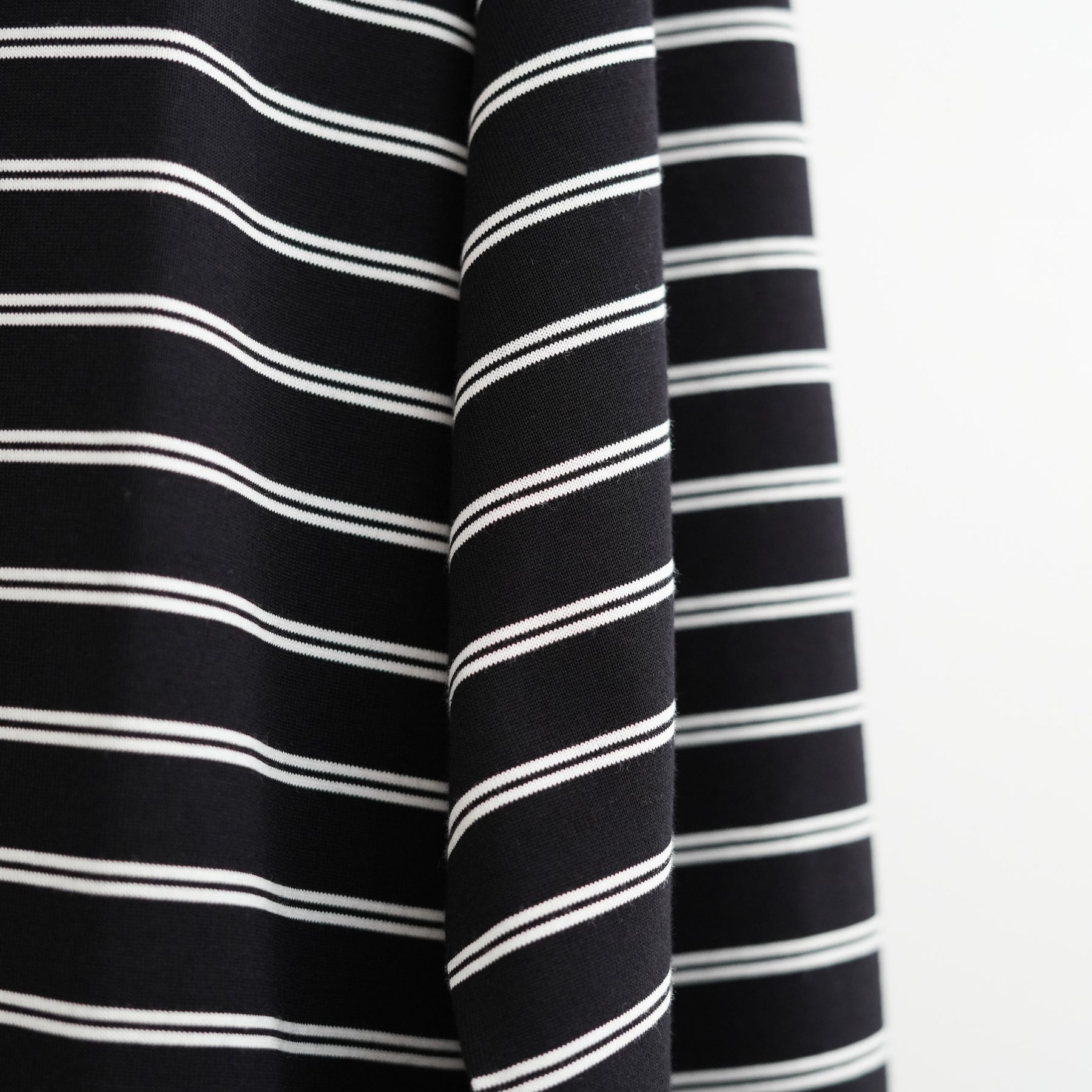 極細糸を撚り合わせた滑らかな天竺素材のロングスリーブボーダーTシャツ。非常に細い3本の糸を撚り合わせることで生まれる自然な光沢と柔らかな肌なじみ。糸の良さを最大限に引き出した均整の取れた編み目が、美しく上品な表情を演出。
