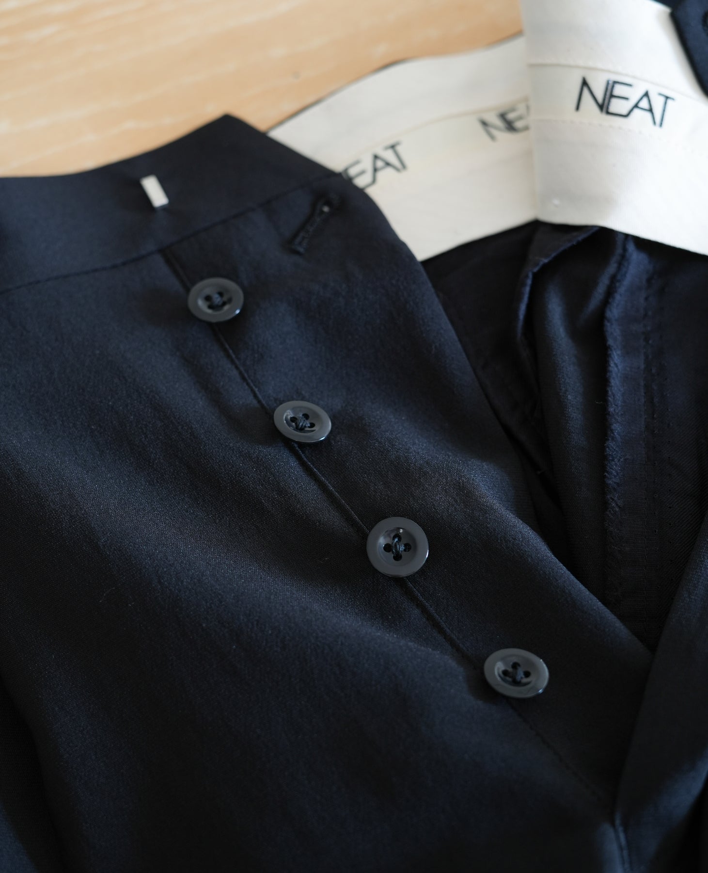 強い撚りを加えたリサイクルポリエステル糸を使用した生地を採用。 自然なシワ感とリネンライクな風合いを表現しており、夏の蒸し暑い時期に最適。 自然なストレッチ性だけでなく、速乾性・撥水性を持ちあわせたユーティリティな1着です。