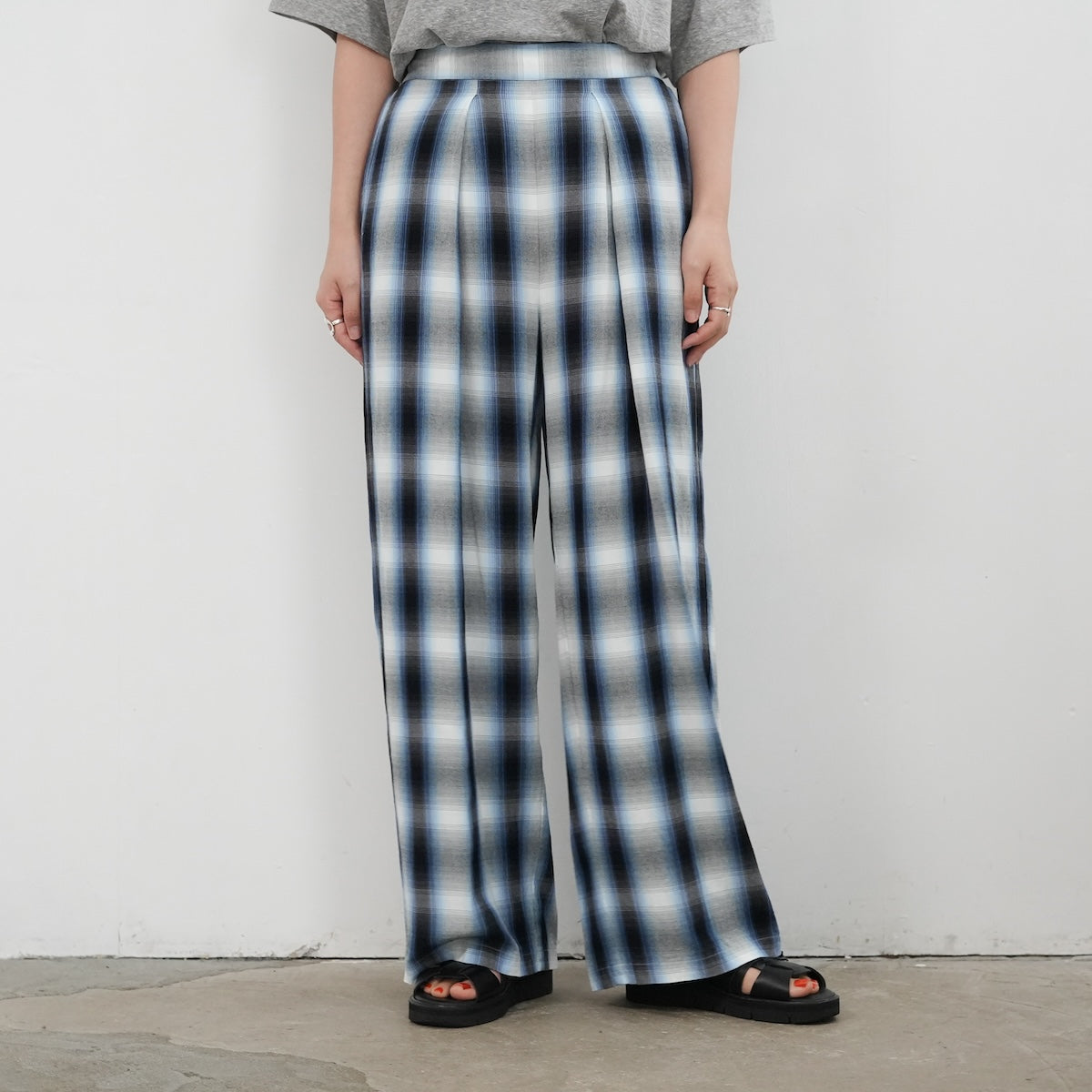 【26SS】PHEENY Rayon Ombre Check Gathered Pants "BLUE"