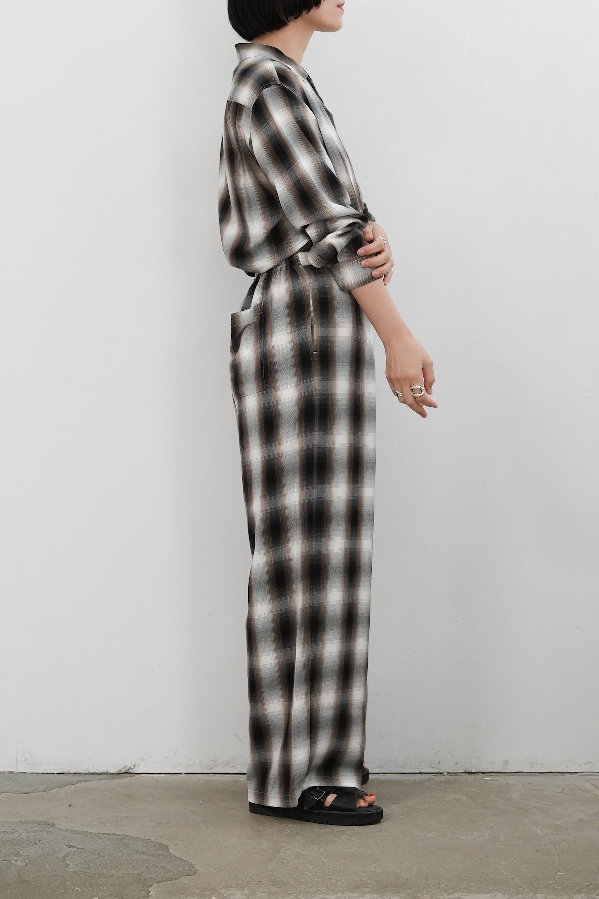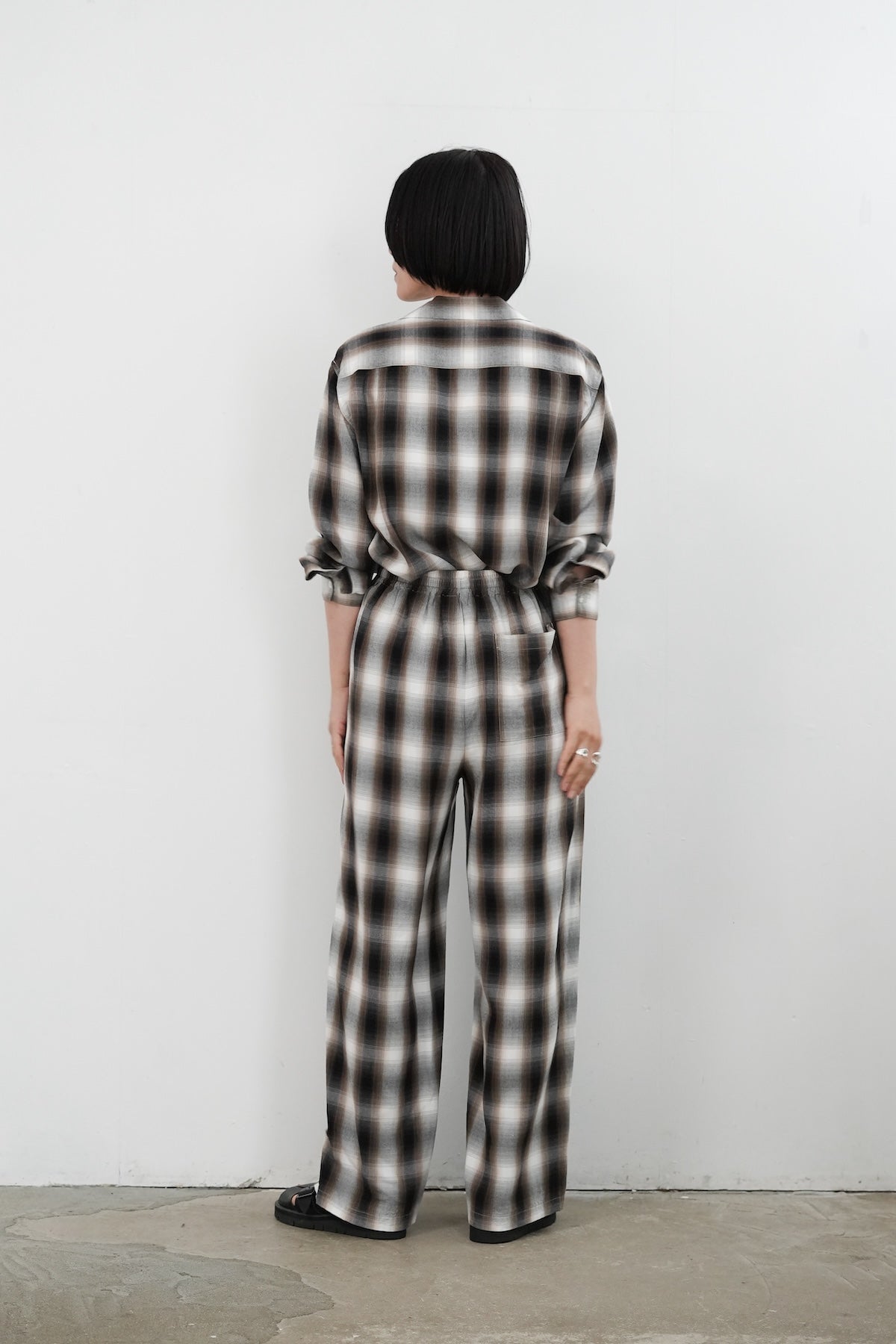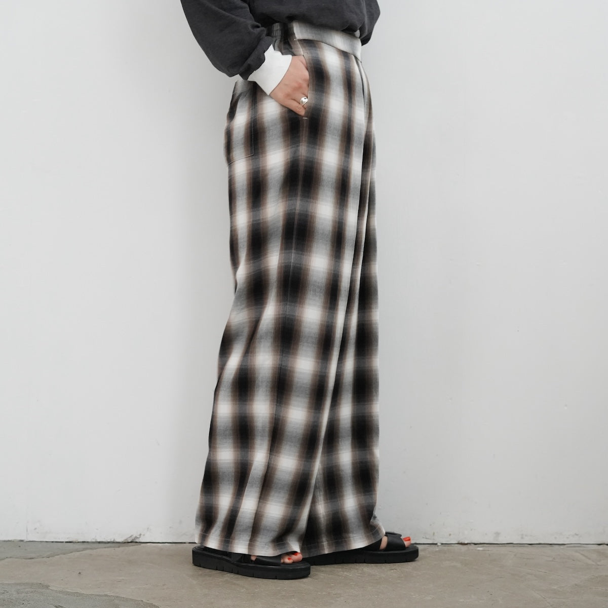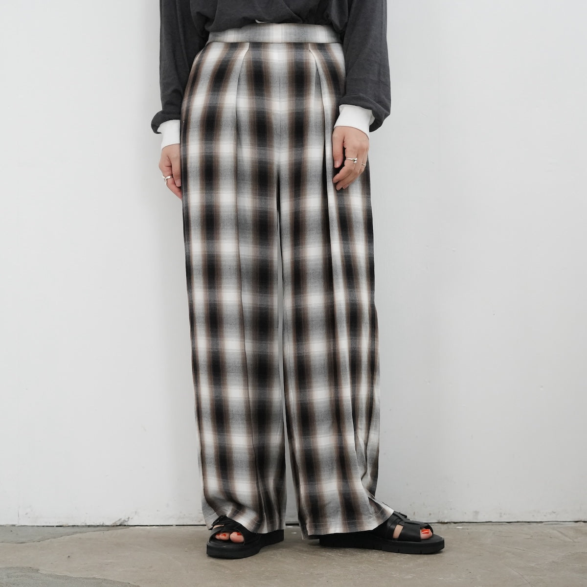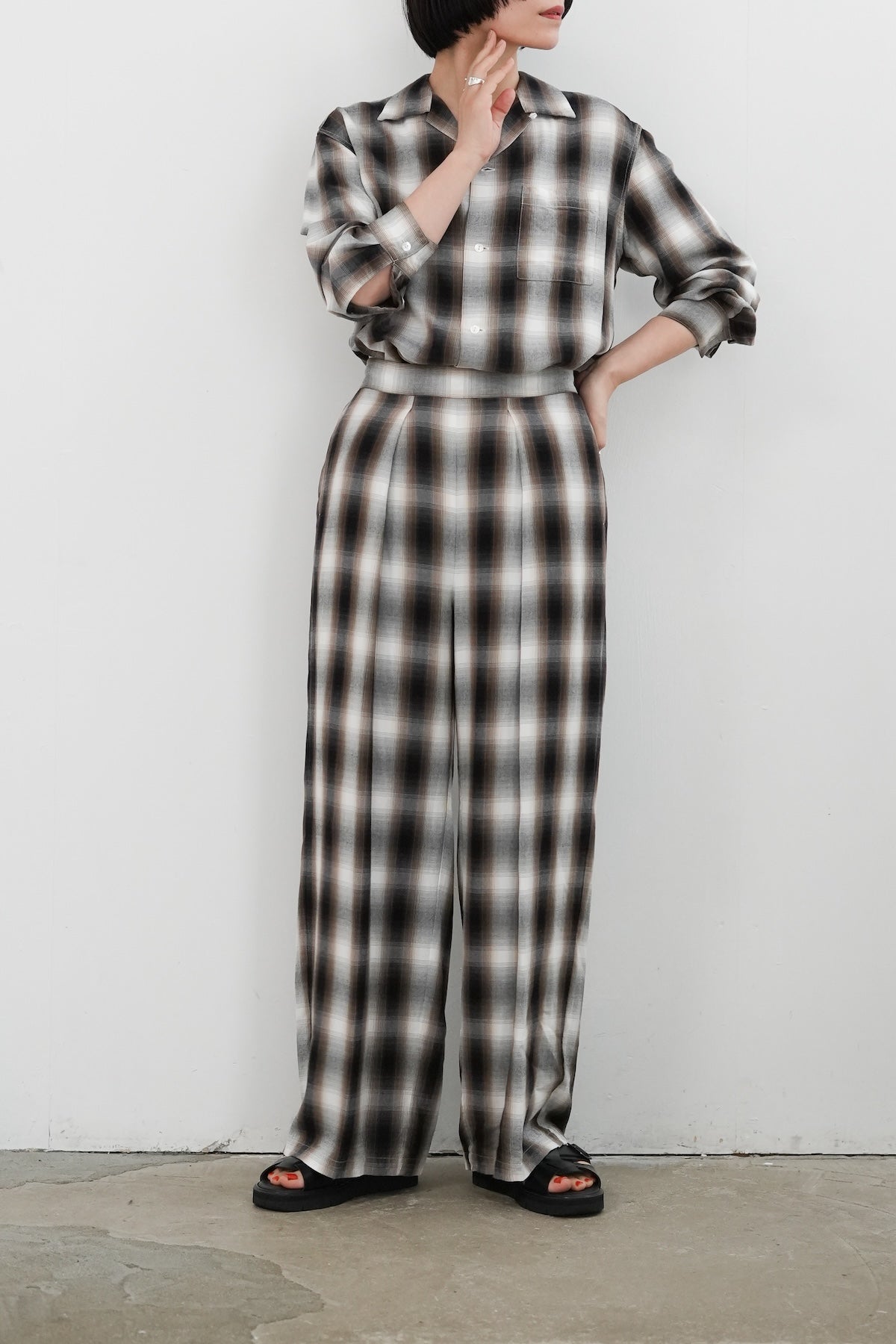 PHEENY定番のオリジナルレーヨンチェックパンツ。