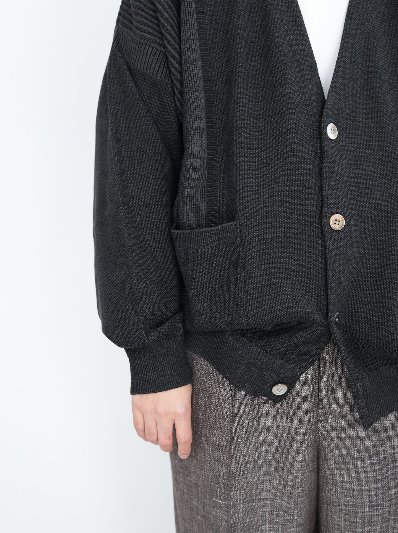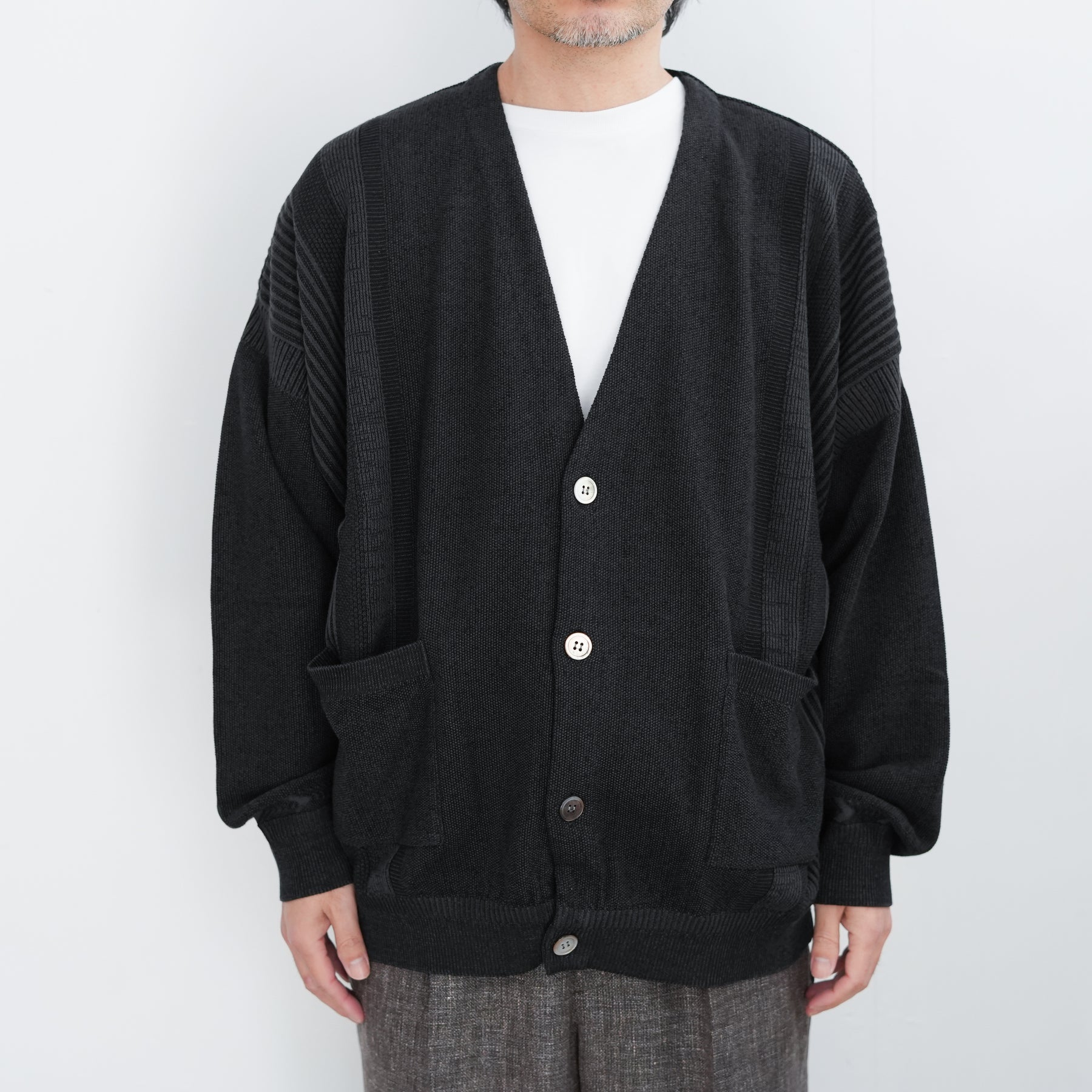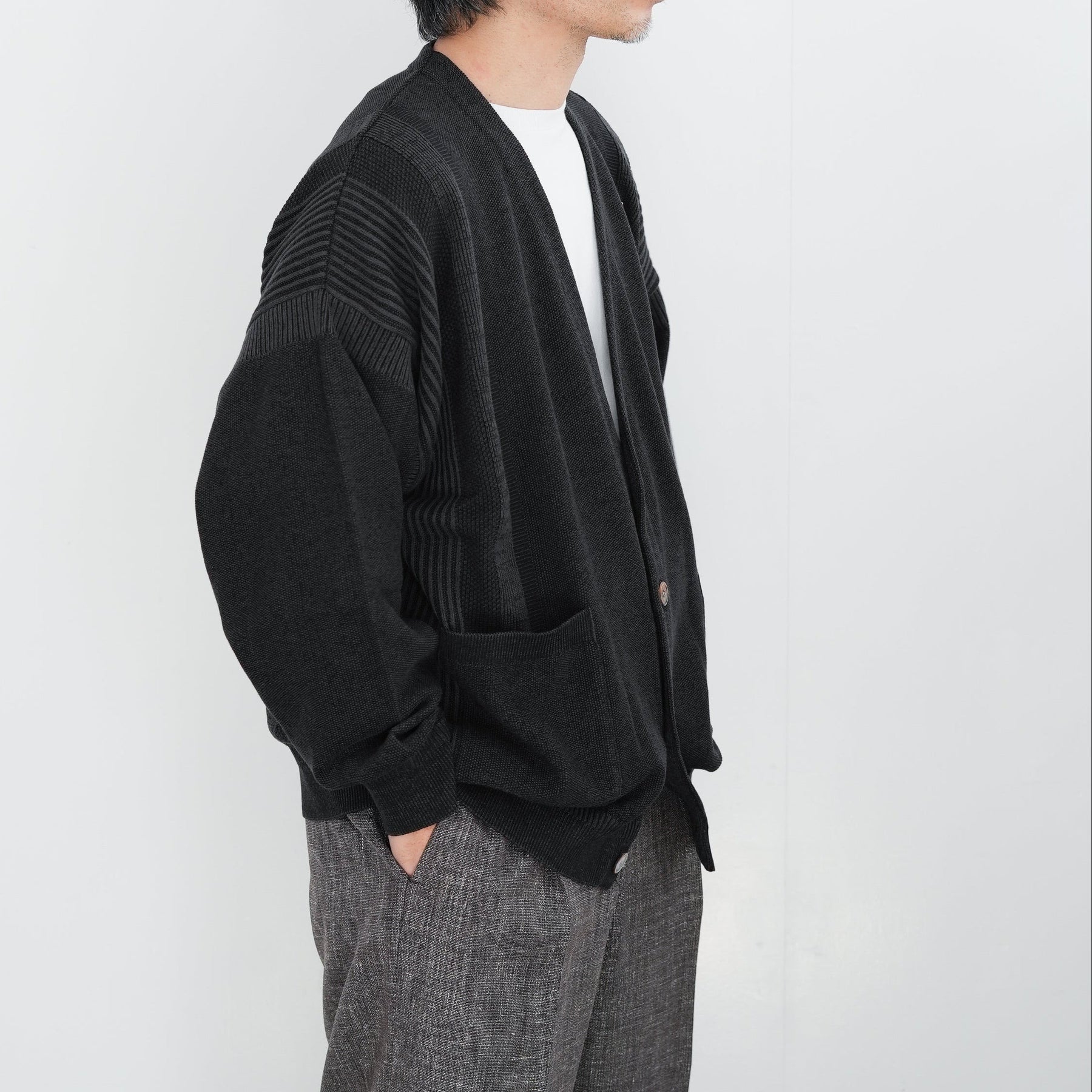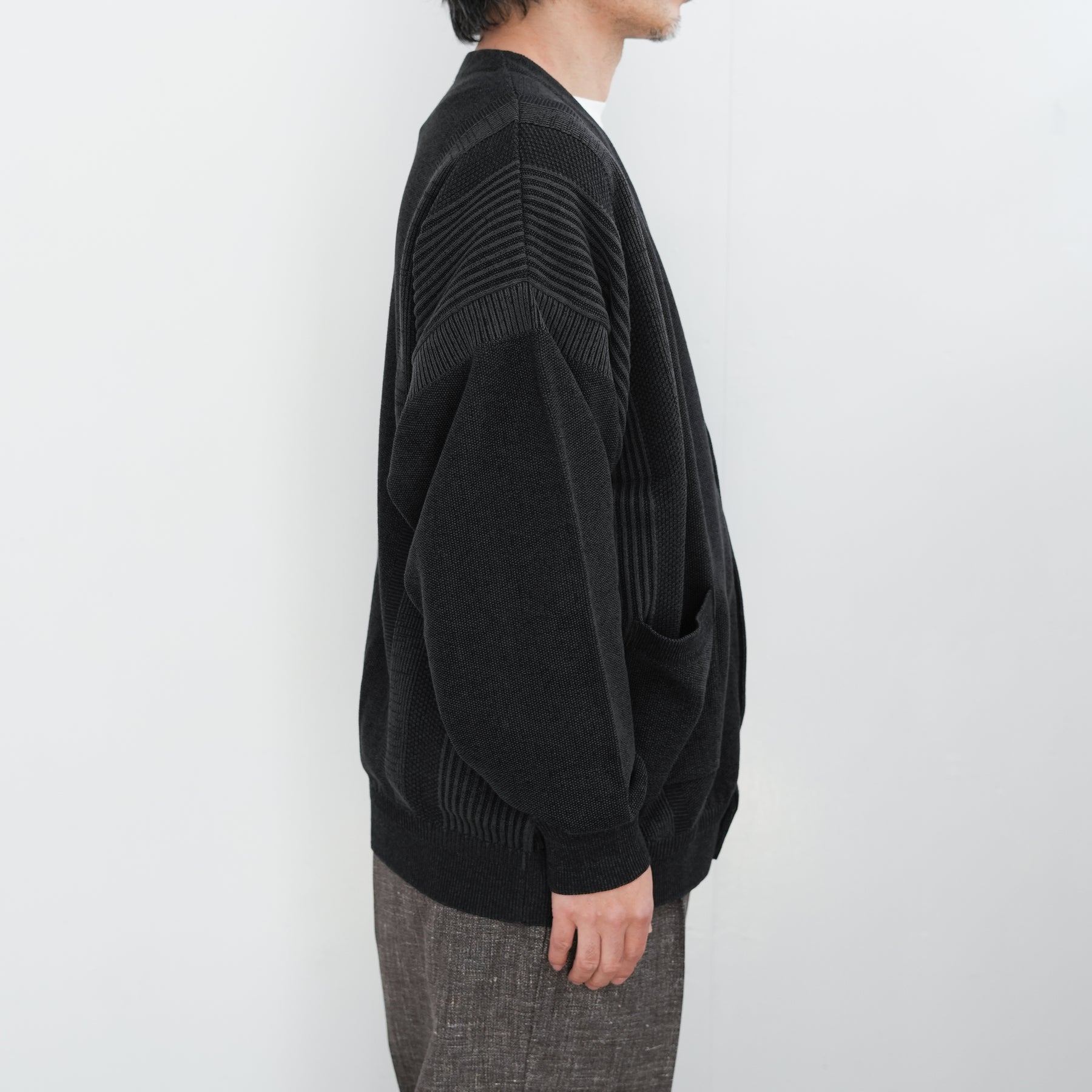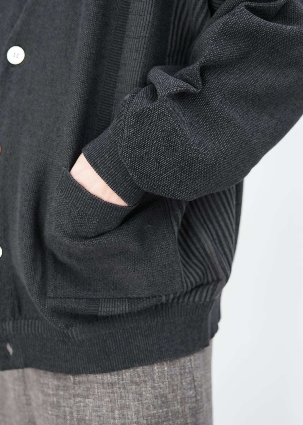 身頃中央と袖の鹿の子編みの細かな凹当で耕された田を表しています。