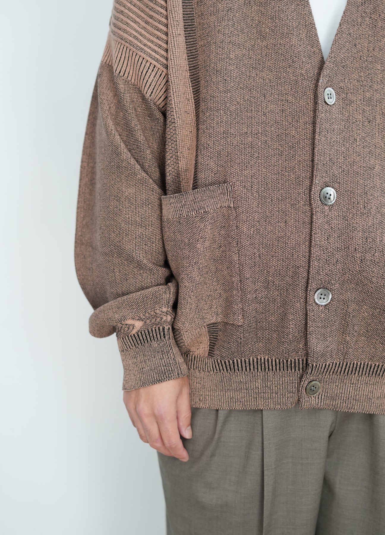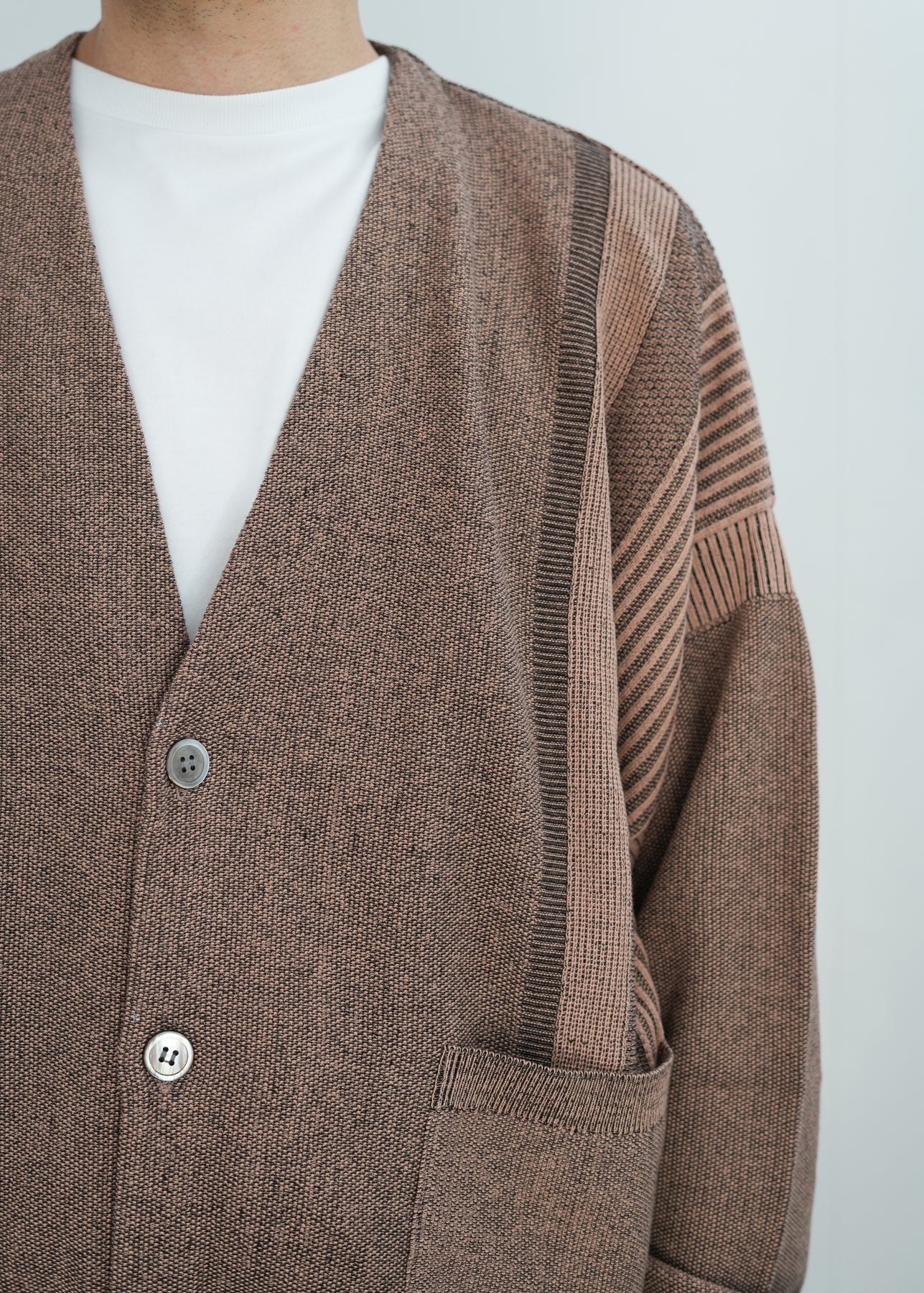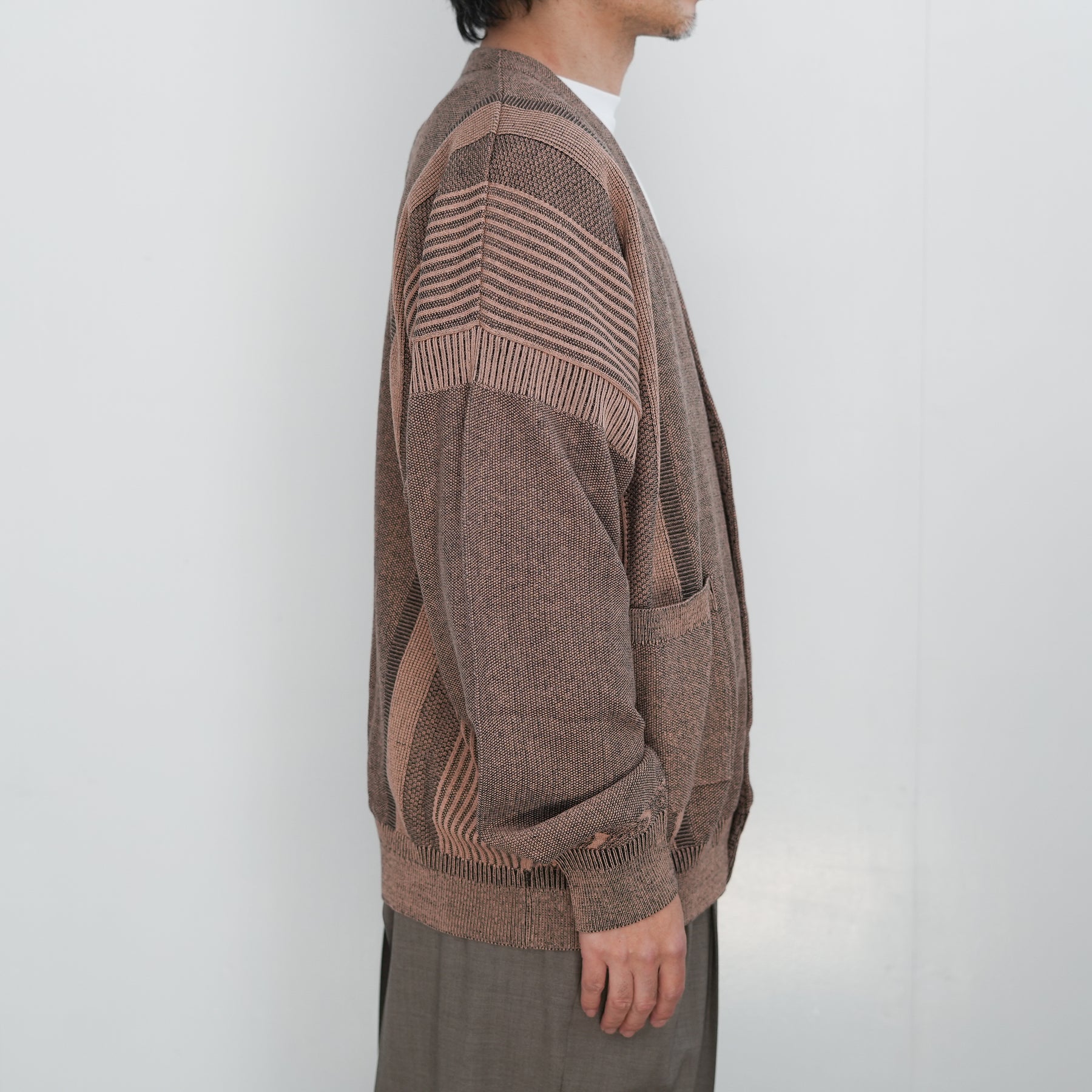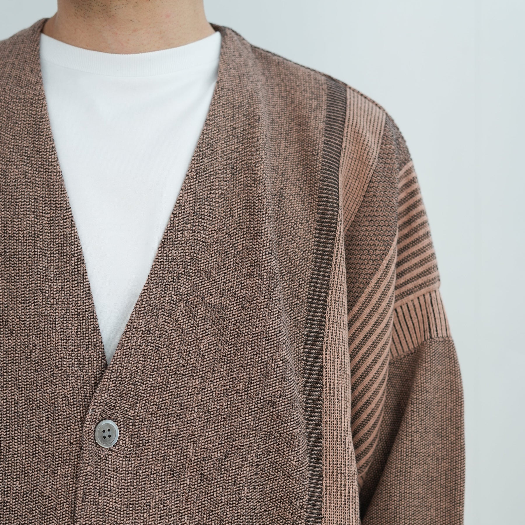 身頃中央と袖の鹿の子編みの細かな凹当で耕された田を表しています。