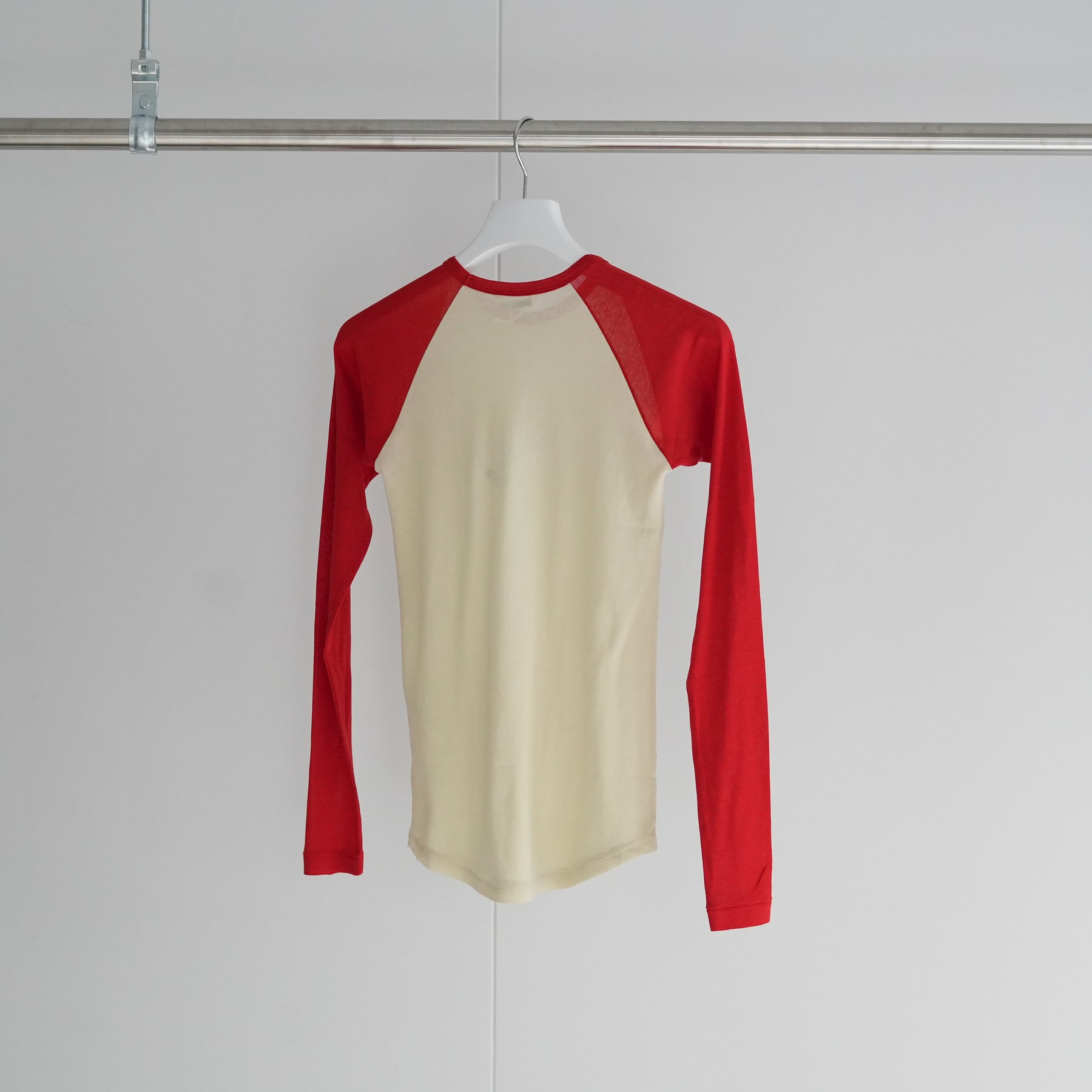AURALEE SUPER HIGH GAUGE SHEER RIB RAGLAN P/O "IVORY×RED"