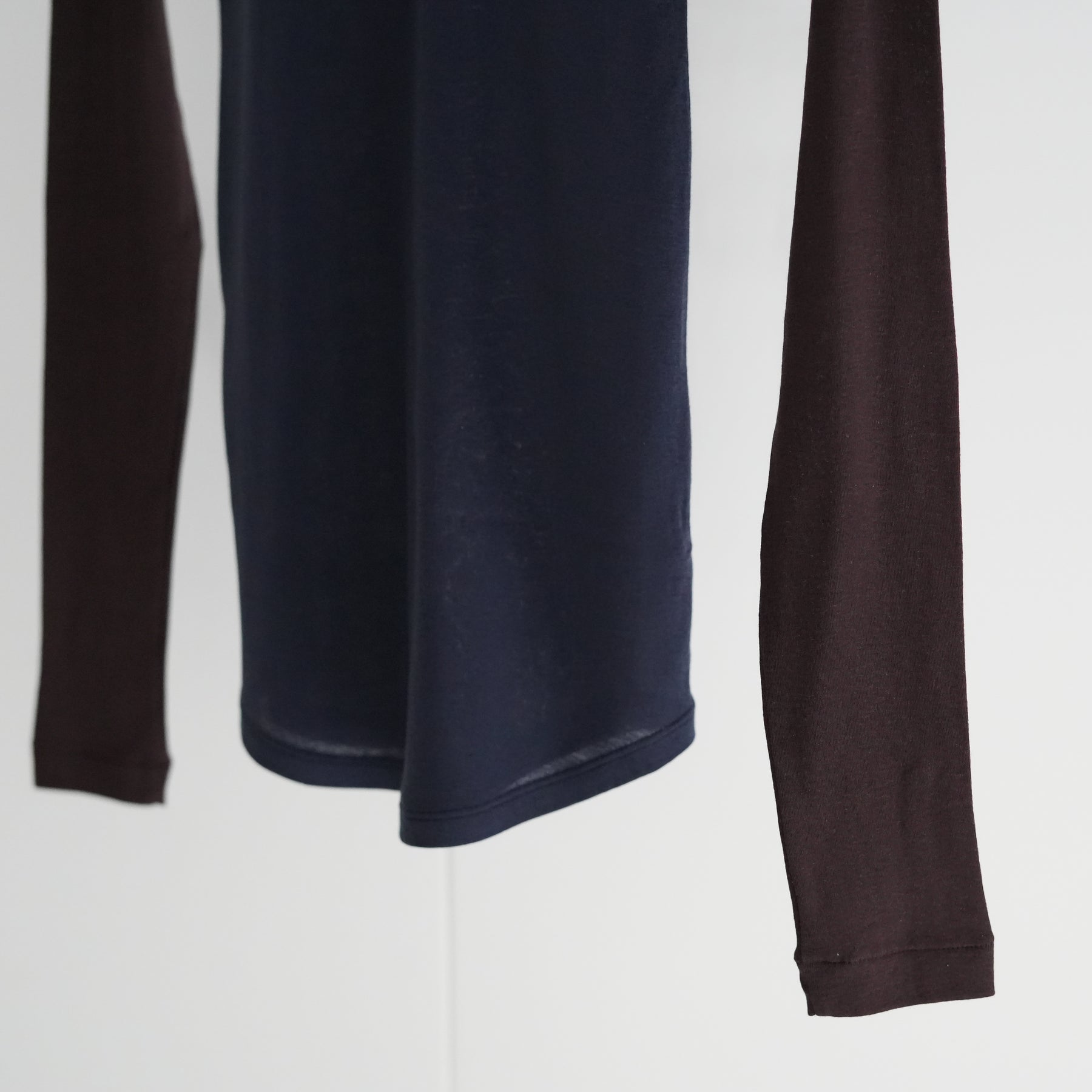 超長綿を超極細番手に紡績し、希少なハイゲージ編み機で丁寧に編み立てたリブ素材を使った