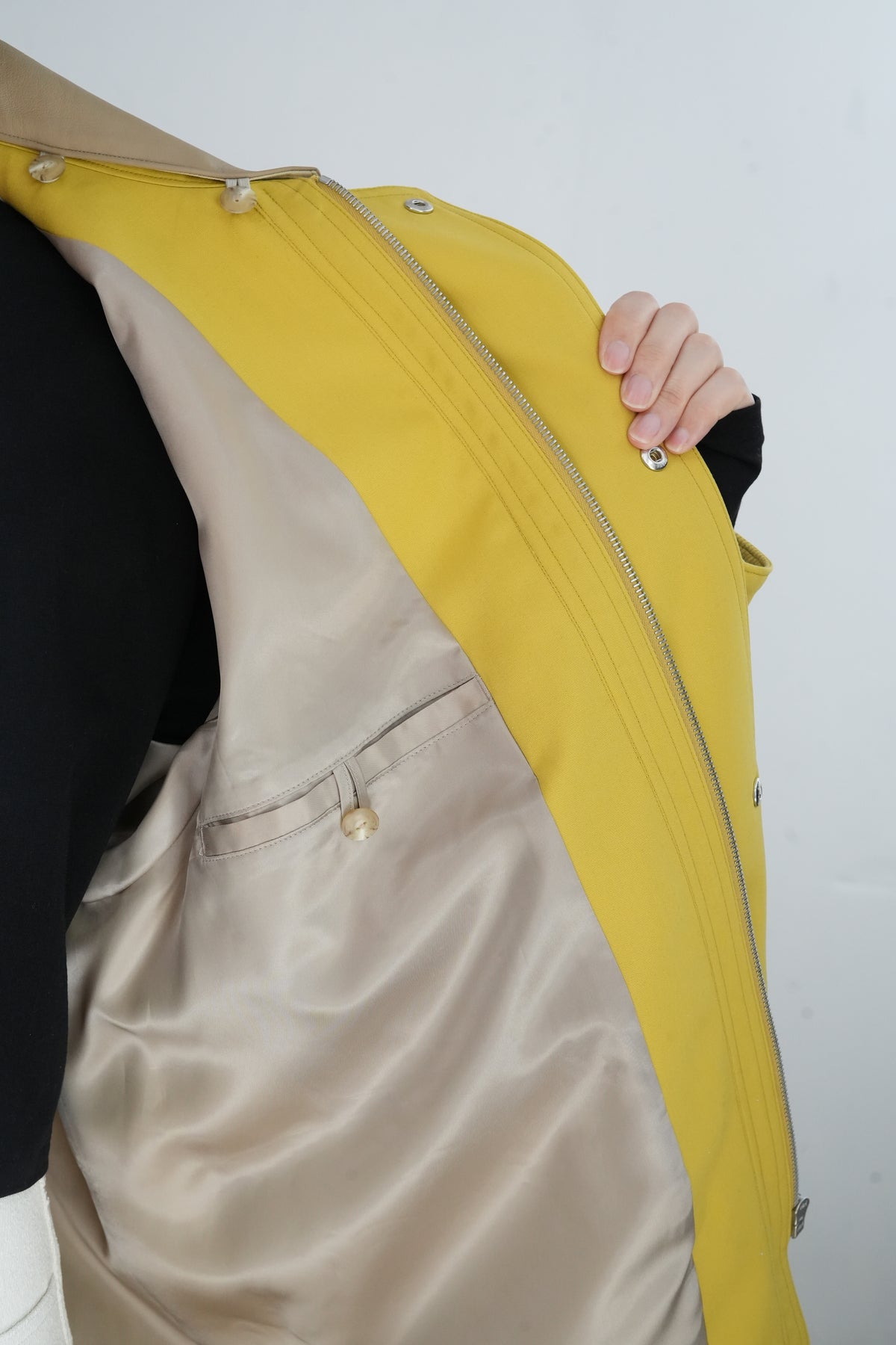 構築的なフォルムを際立たせる上質で端正な素材です。
