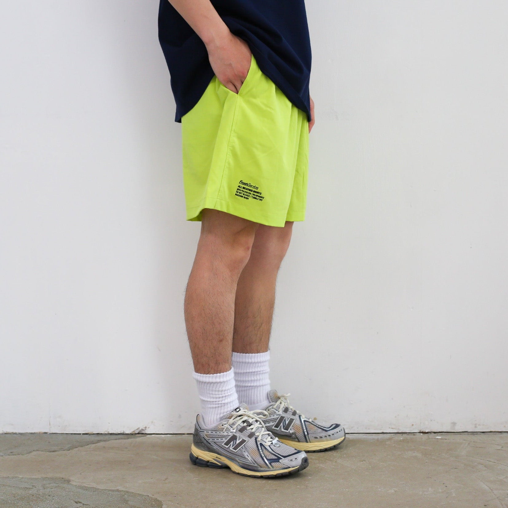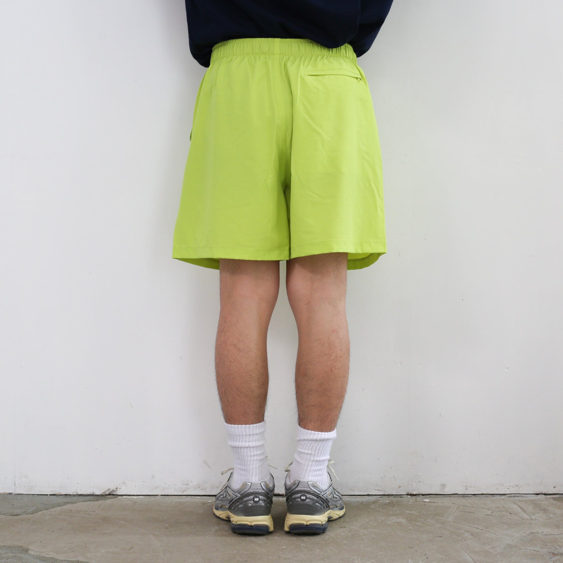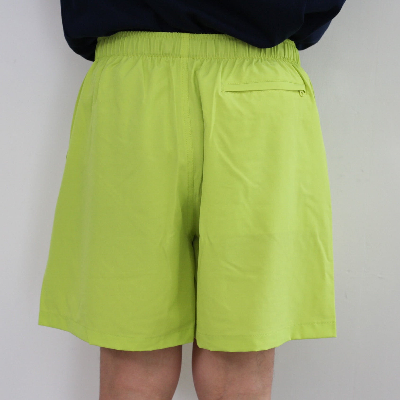 レジャーシーンに最適なショートパンツ。マットな質感で柔らかな肌触り、吸水性と速乾性に優れたファブリック。パンツ内側にはメッシュライナーが張られているためスイムウェアとしても活躍する。ゆったりしたシルエットにゴムウエストというリラックスな仕様は脱ぎ穿きや調整もイージーに。両サイドのポケットに加え、ファスナー付きの後ろポケットをひっくり返してコンパクトにまとまるパッカブル仕様。