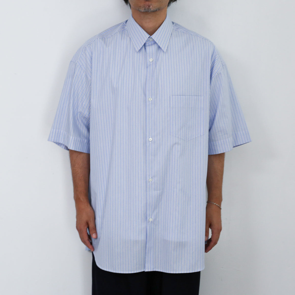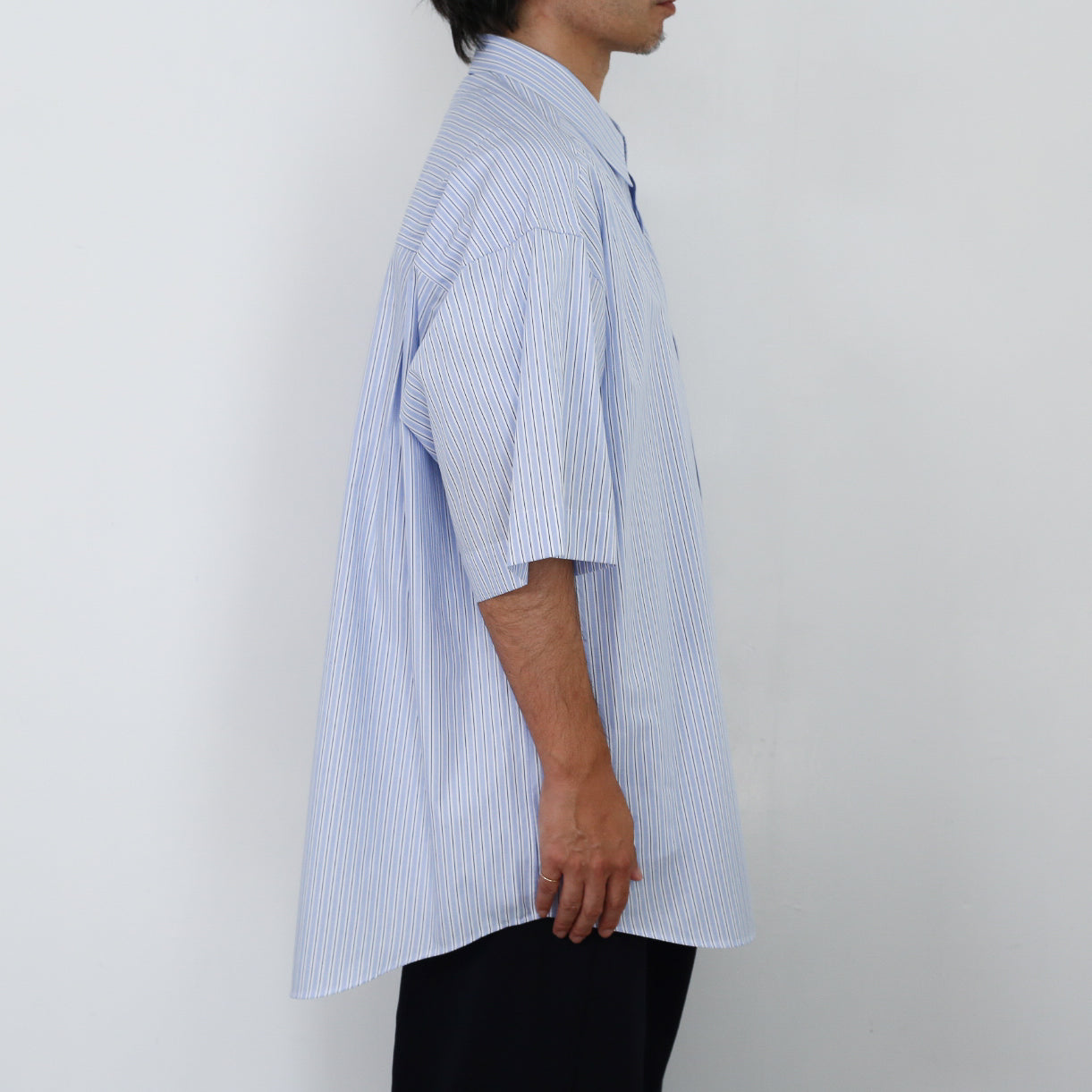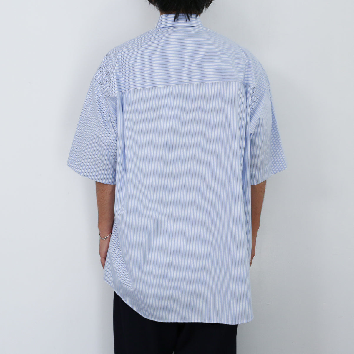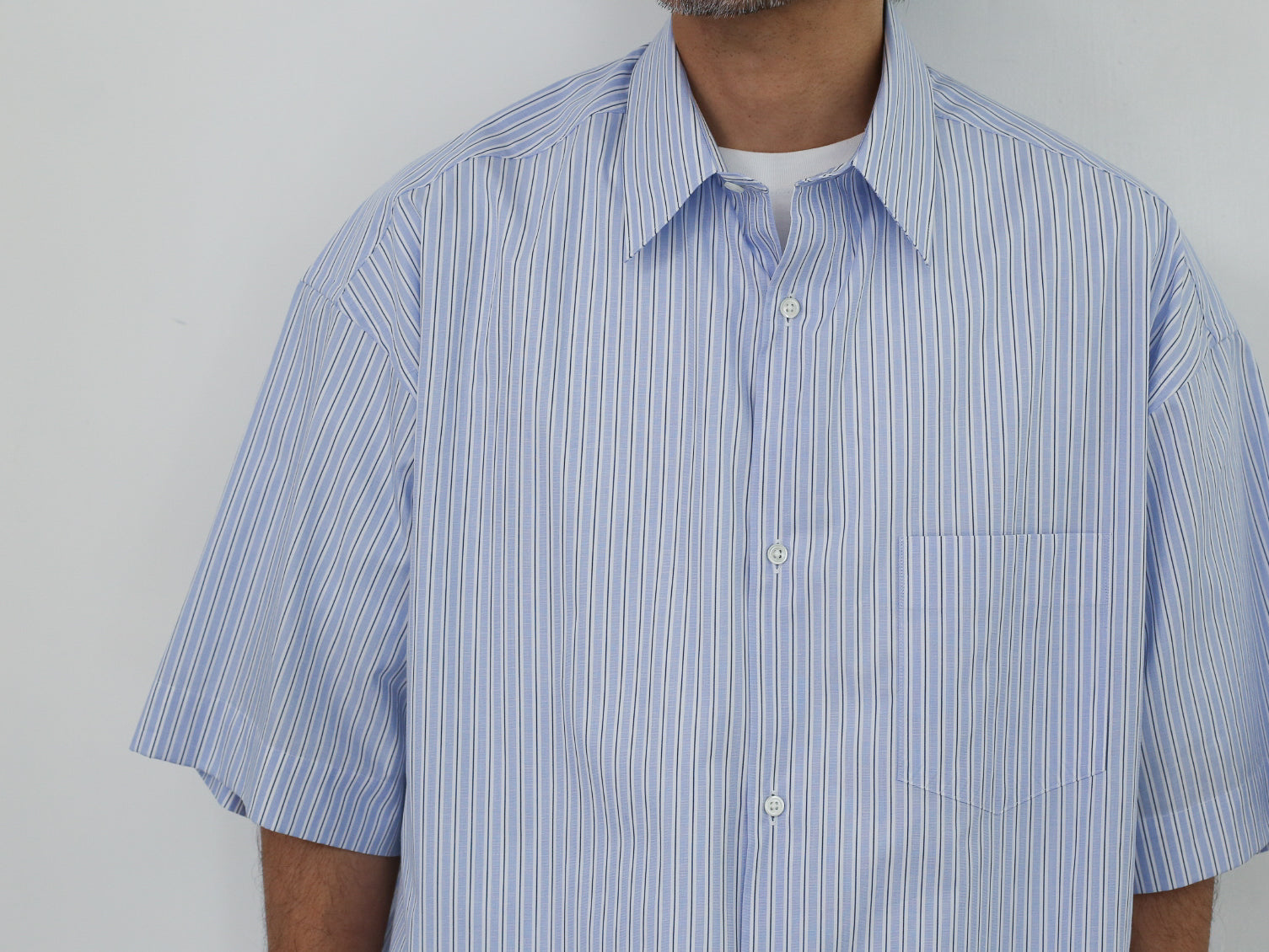 スペイン・バルセロナに拠点を持つSIDOGRAS(シドグラス)社の上質で繊細なコットンを使用したブロード生地の半袖オーバーサイズシャツ。鮮やかな染色と素材そのものの艶感と適度なハリコシ、柔らかい肌触りも魅力。ドロップショルダーでボリュームのあるボックスシルエットでオーセンティックなレギュラーカラー。肩の傾斜や低く下げられたヨークの位置、アームホールの広さなど、細かなディテールを特異なバランスで仕上げたビッグシルエット。