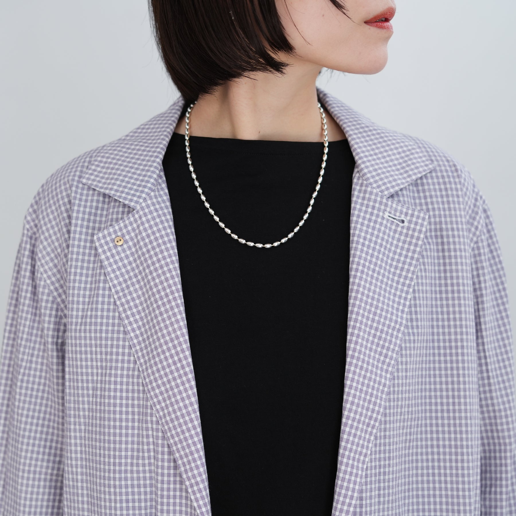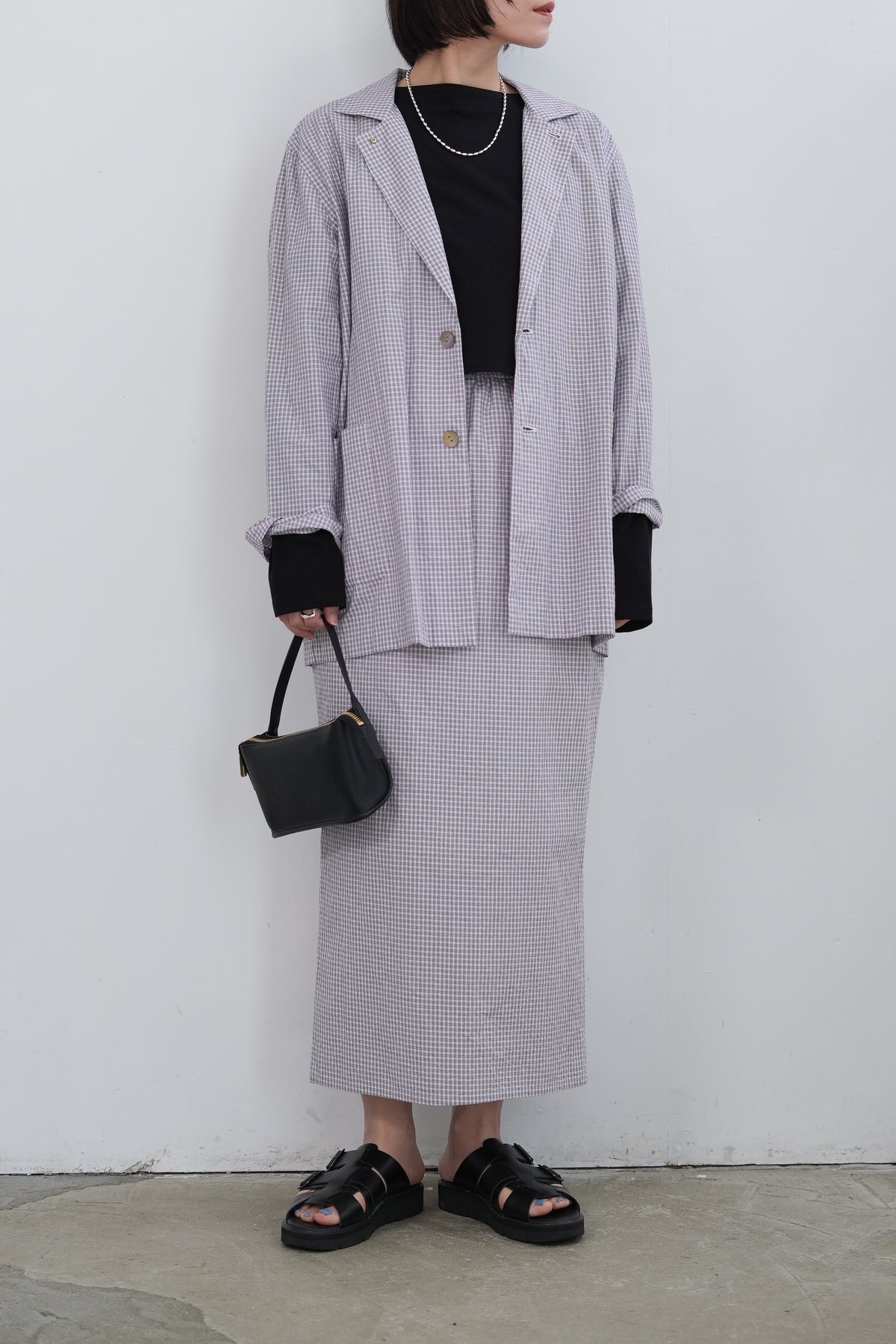 同素材のスカートと合わせれば、夏にも心地よいカジュアルフォーマルとして活躍します。