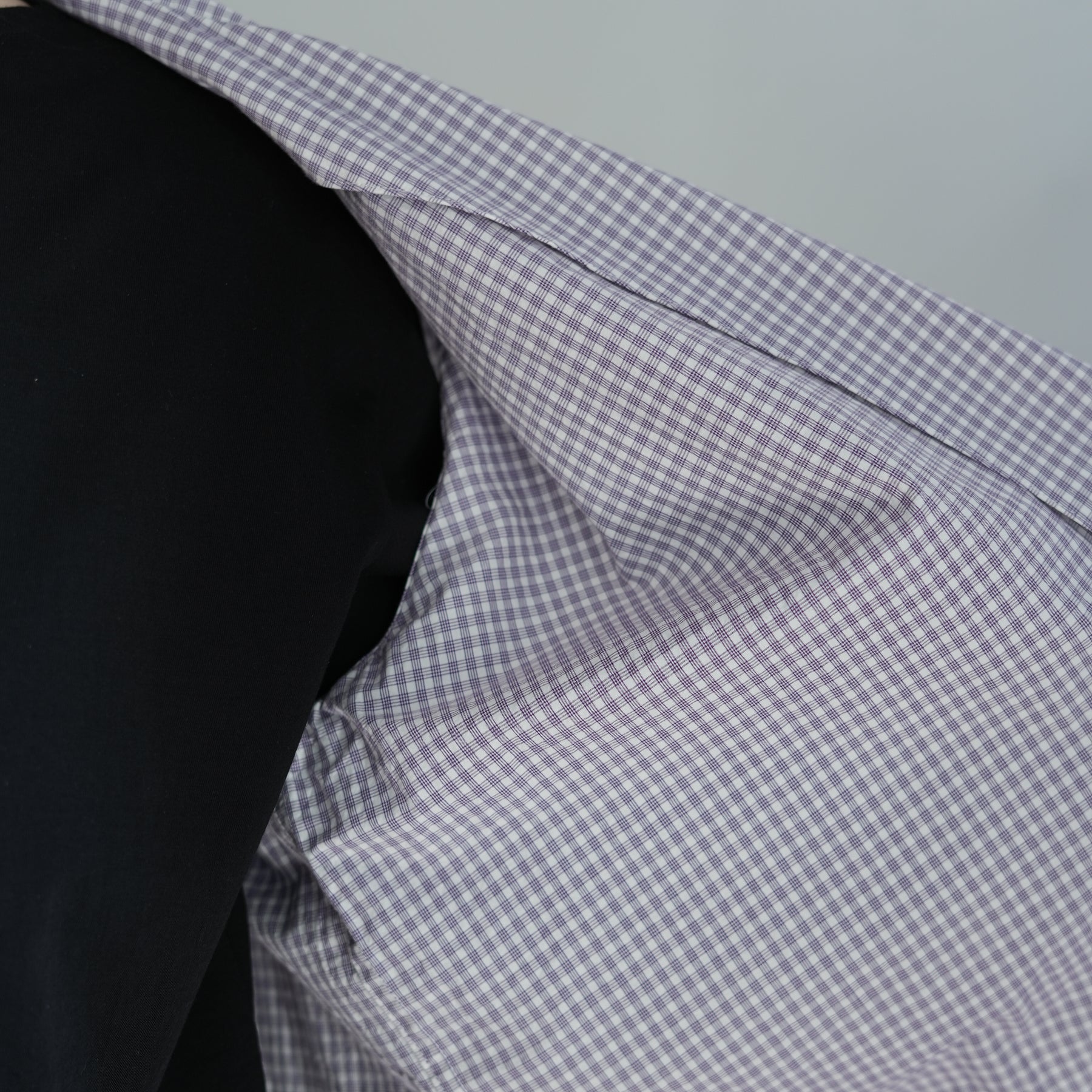 素材は、60/1 を高密度に織り上げたストライプ&チェック。