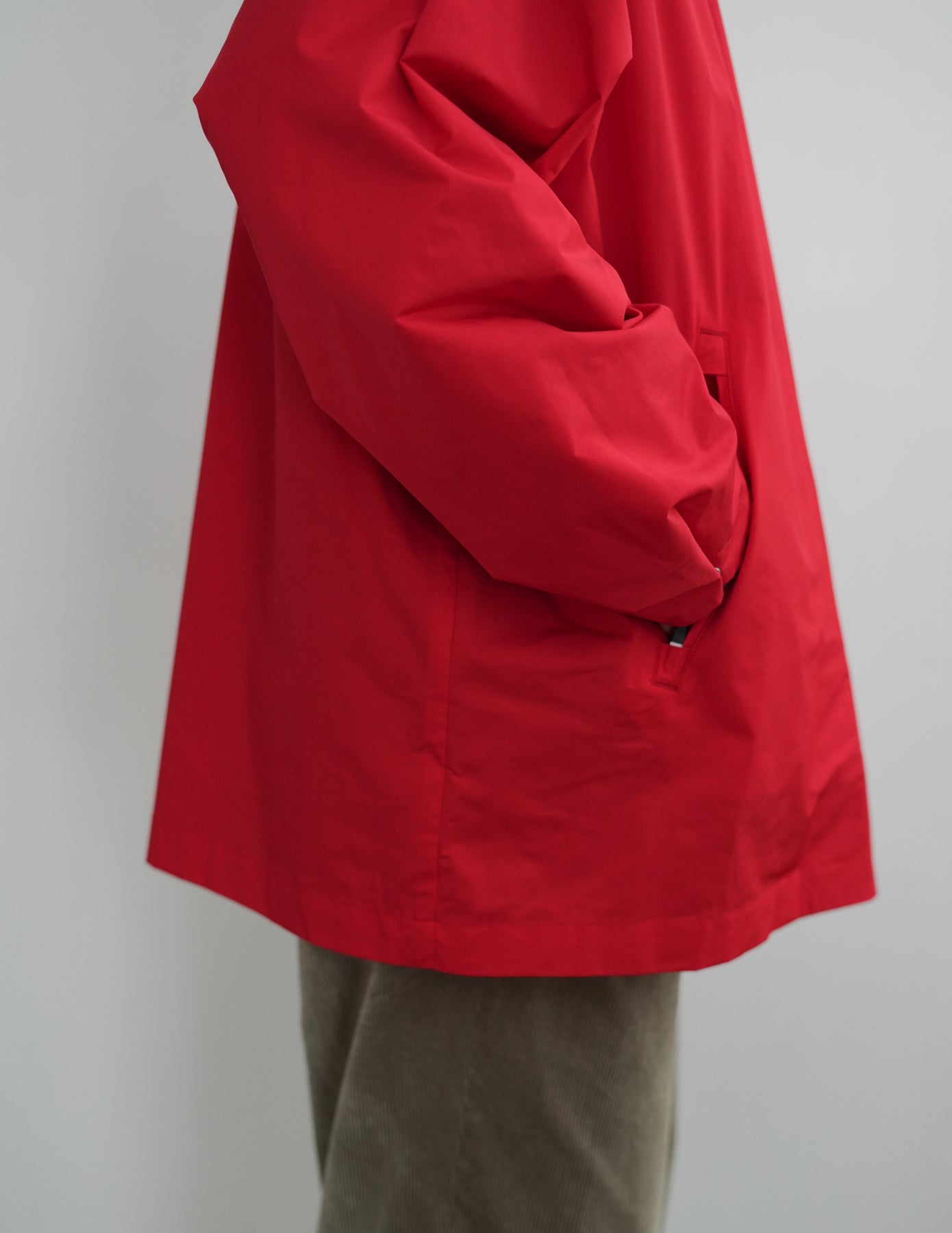 XXLのオーバーサイズ仕様ですが、ただ大きいでは無く全体のバランスを整えたハーフコートのようなシルエットに。