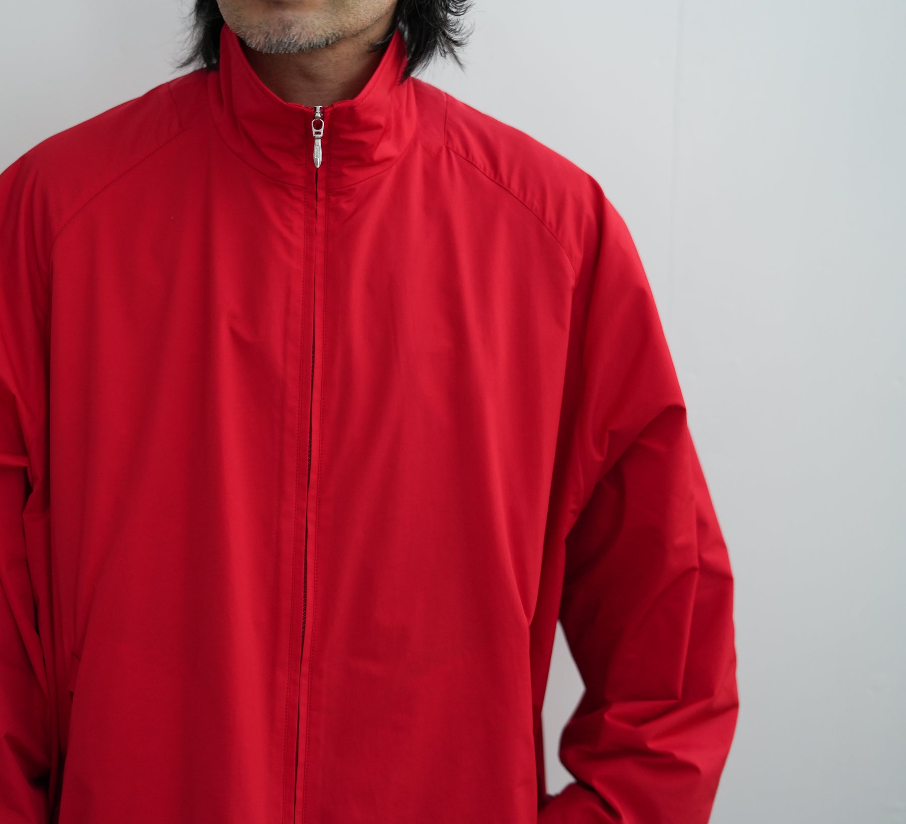 一般的なナイロン素材のトラックジャケットとは違いしっとりとした上品な面がスポーツテイストを抑えたデザイン。
