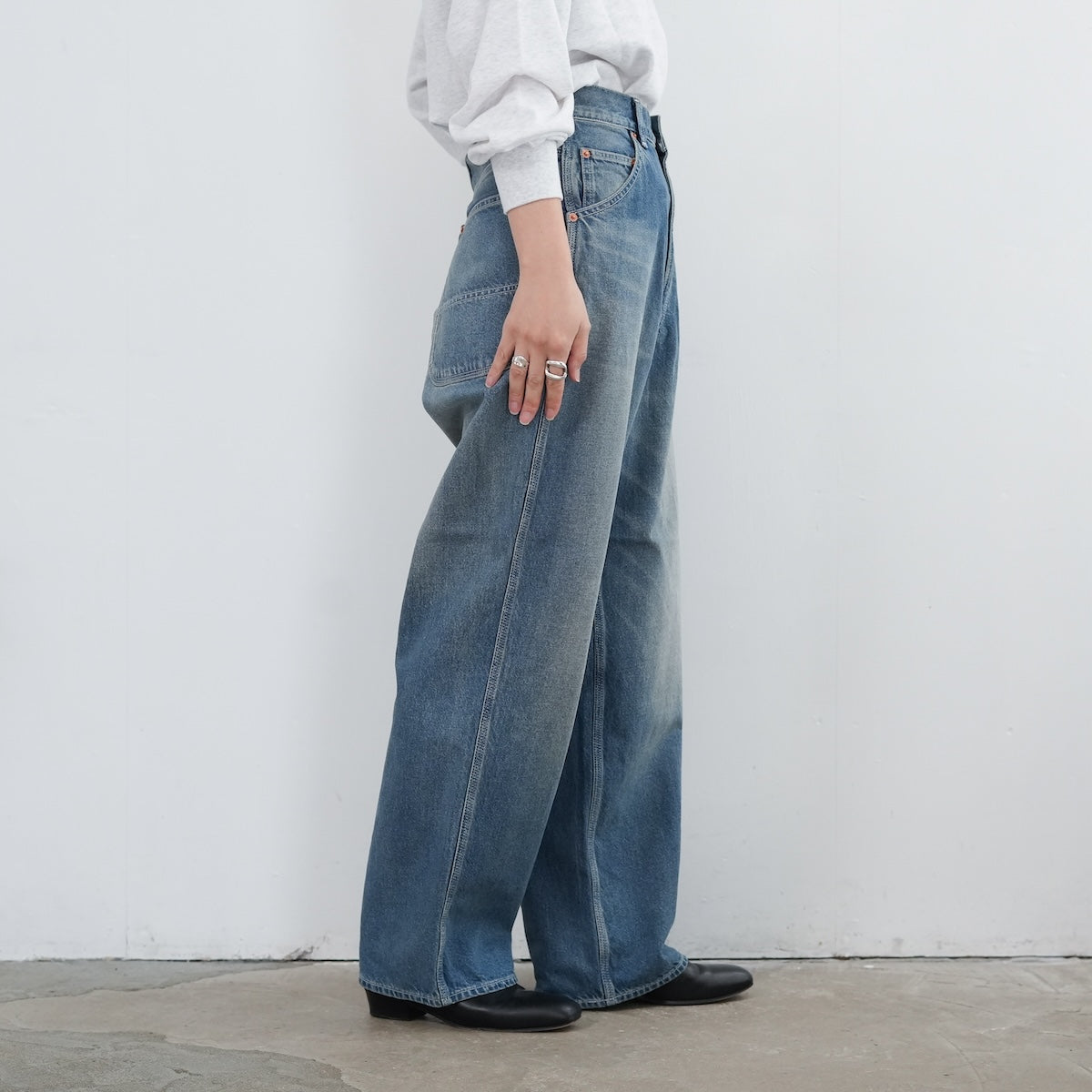 いつものデニムとは違った雰囲気でお楽しみいただける大人のためのワイドデニムです。