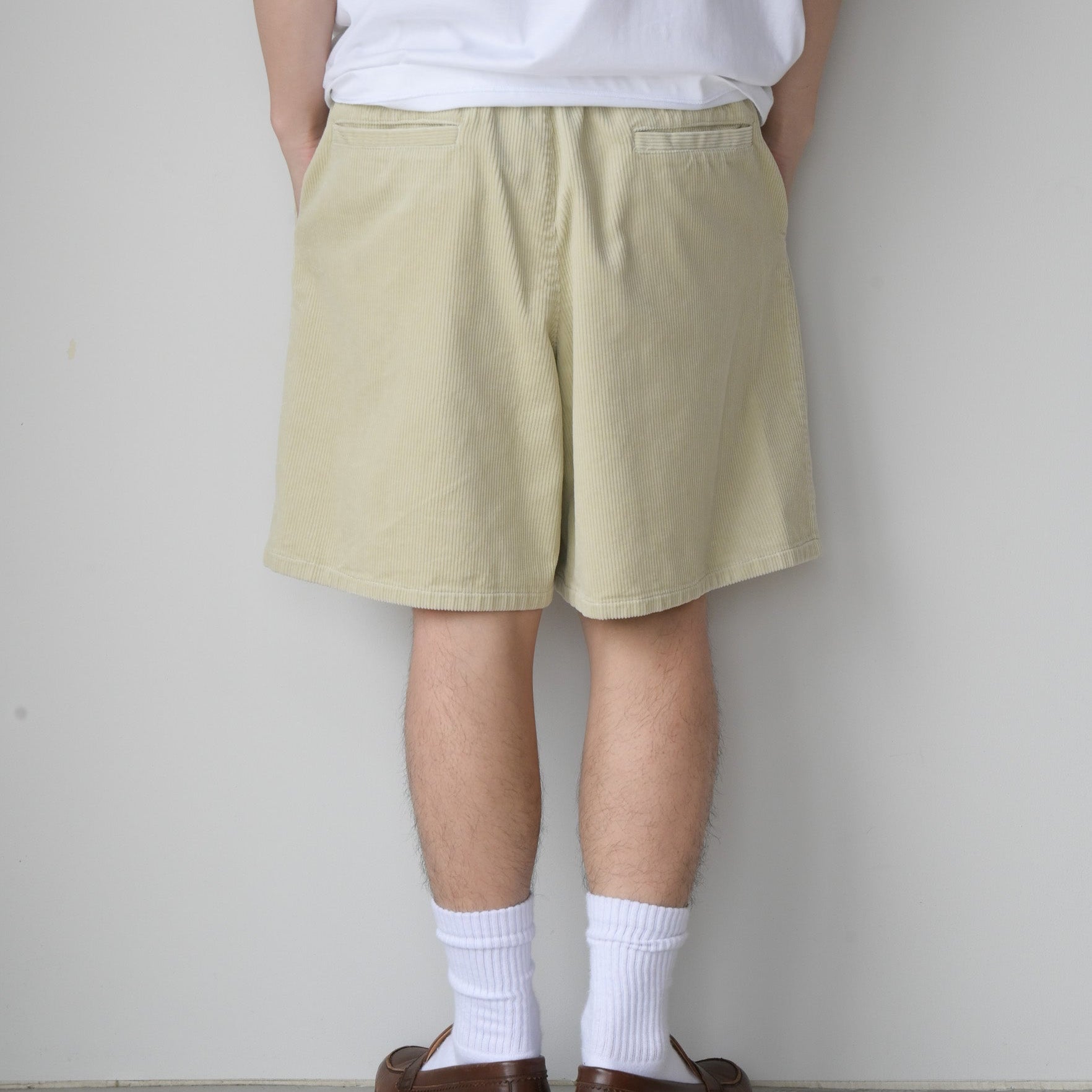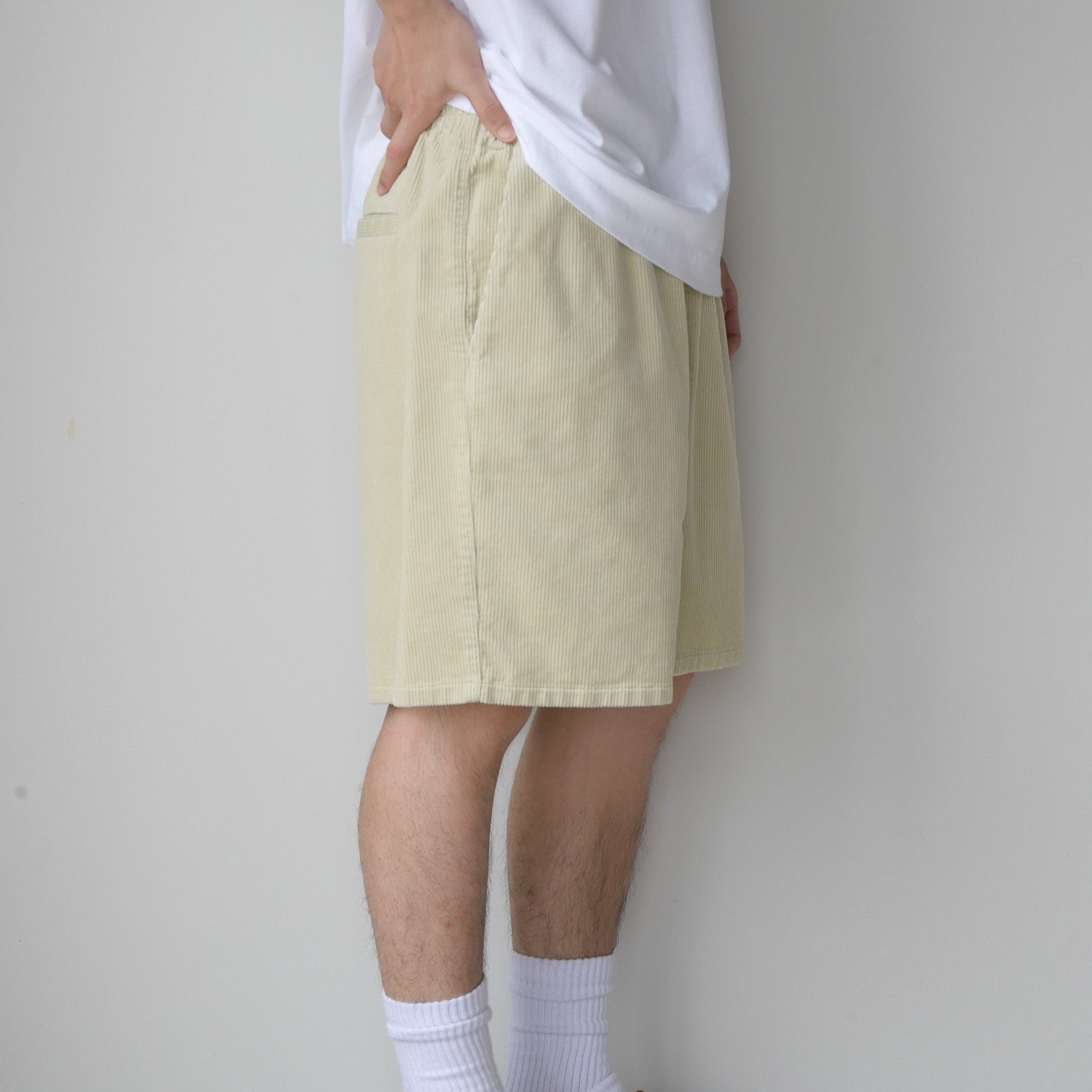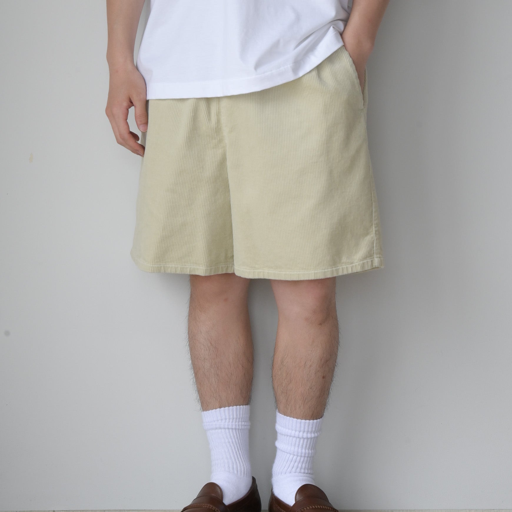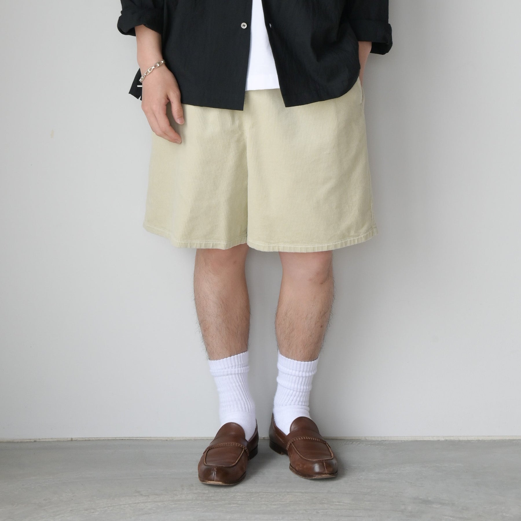 タテに32/2、ヨコに16/1のオーガニック糸を使用した基布が薄く柔らかなサマーコーデュロイです。太番手の糸を使用しながらも、ゆっくりの染め上げることで、柔らかく軽い風合いに仕上げております。洗いをかけてカジュアルに表現したイージーショーツです